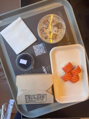 - "Томаму": филе лосося, сливочный сыр, салат чука, соус ореховый - 8 шт.