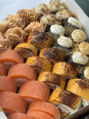 - "Балтимор" (острое): филе тунца, сыр чеддер, пряный соус, криспи - 8 шт.