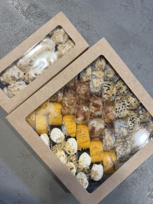 - "Брайтон": филе тунца, сливочный сыр, такуан, огурец, лук зеленый, соус пряный, соус терияки, орехи кешью - 8 шт.