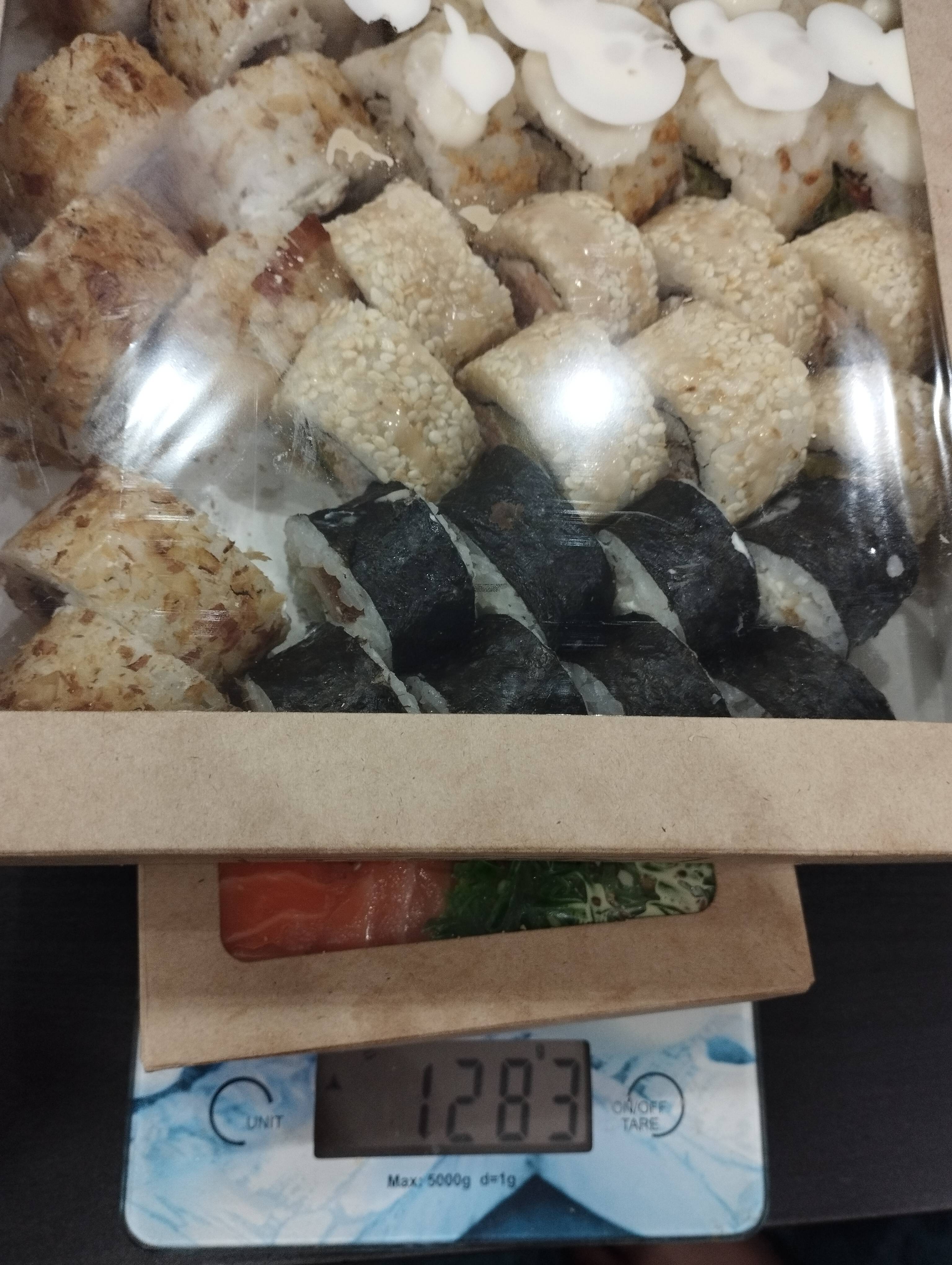 - "Детройт": цыпленок-гриль, томат, салат Айсберг, такуан, сливочный сыр, луковый мармелад, соус Лос-Анджелес и орехи кешью - 8 шт.