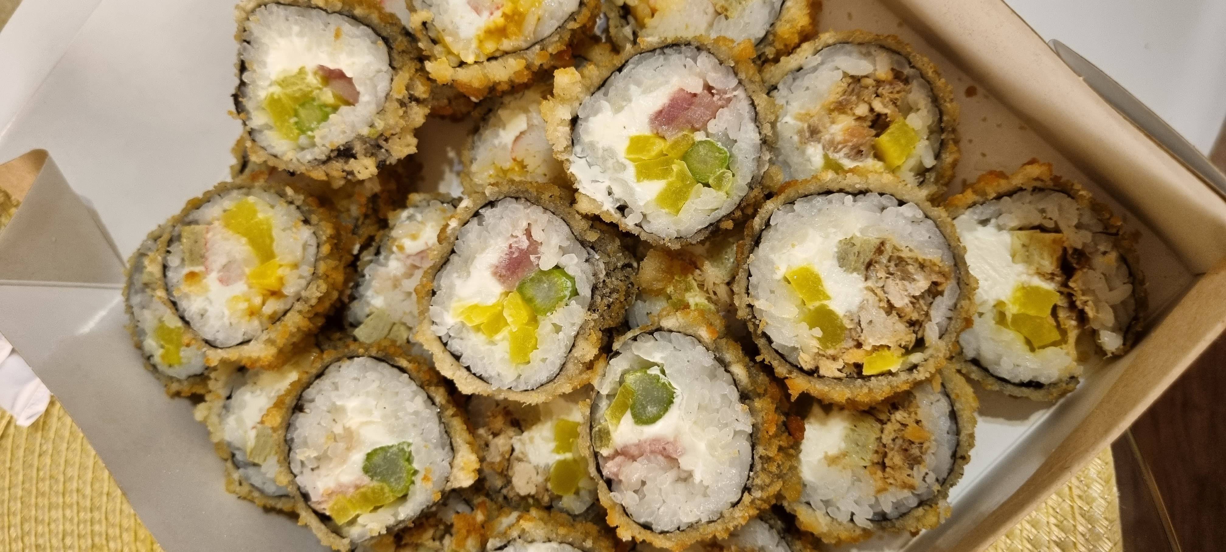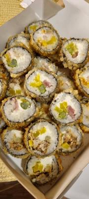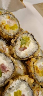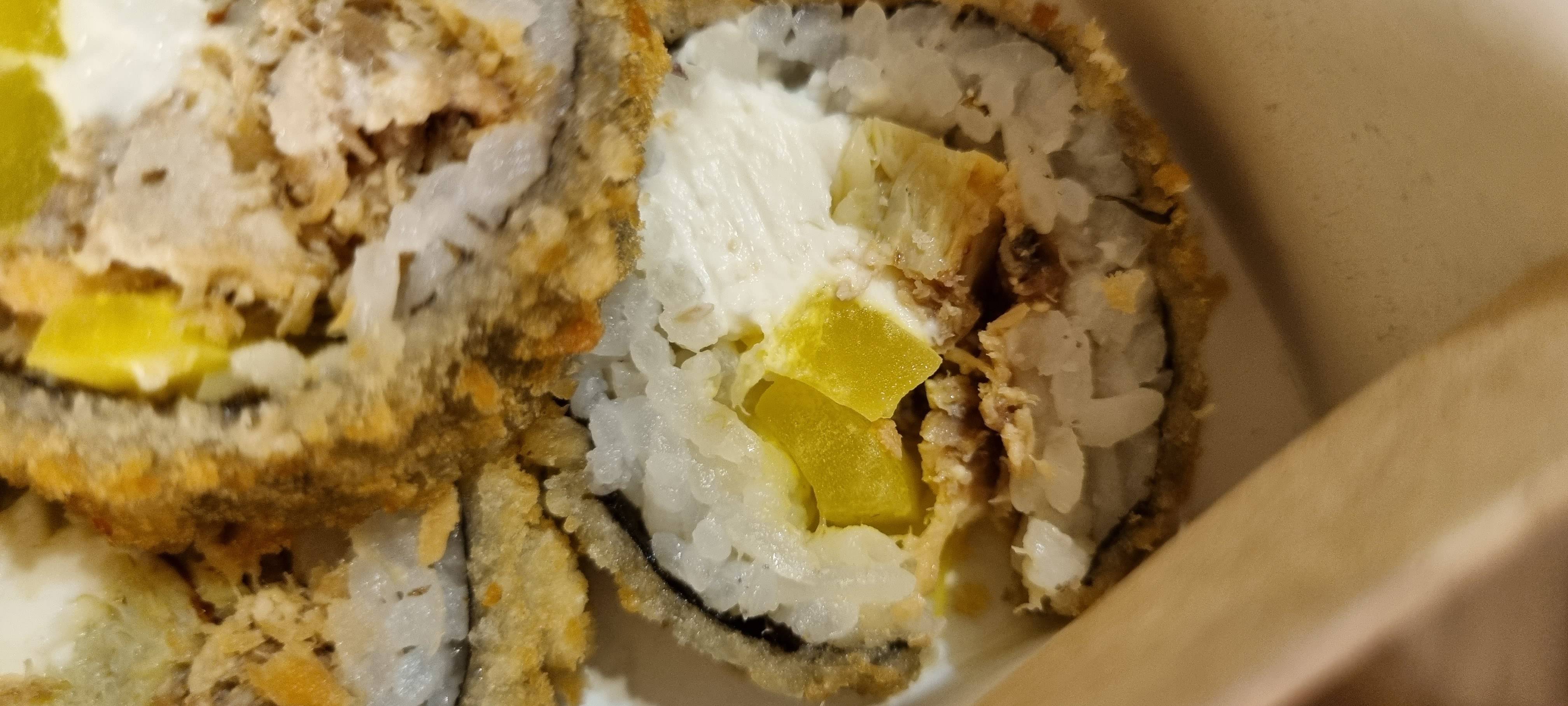 - "Магуро фрай": филе тунца, сливочный сыр, такуан, салат Айсберг, панировка - 5 шт.