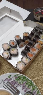 - "Фила огурец": филе лосося, сливочный сыр, огурец, икра Осетровая имитация - 8 шт.