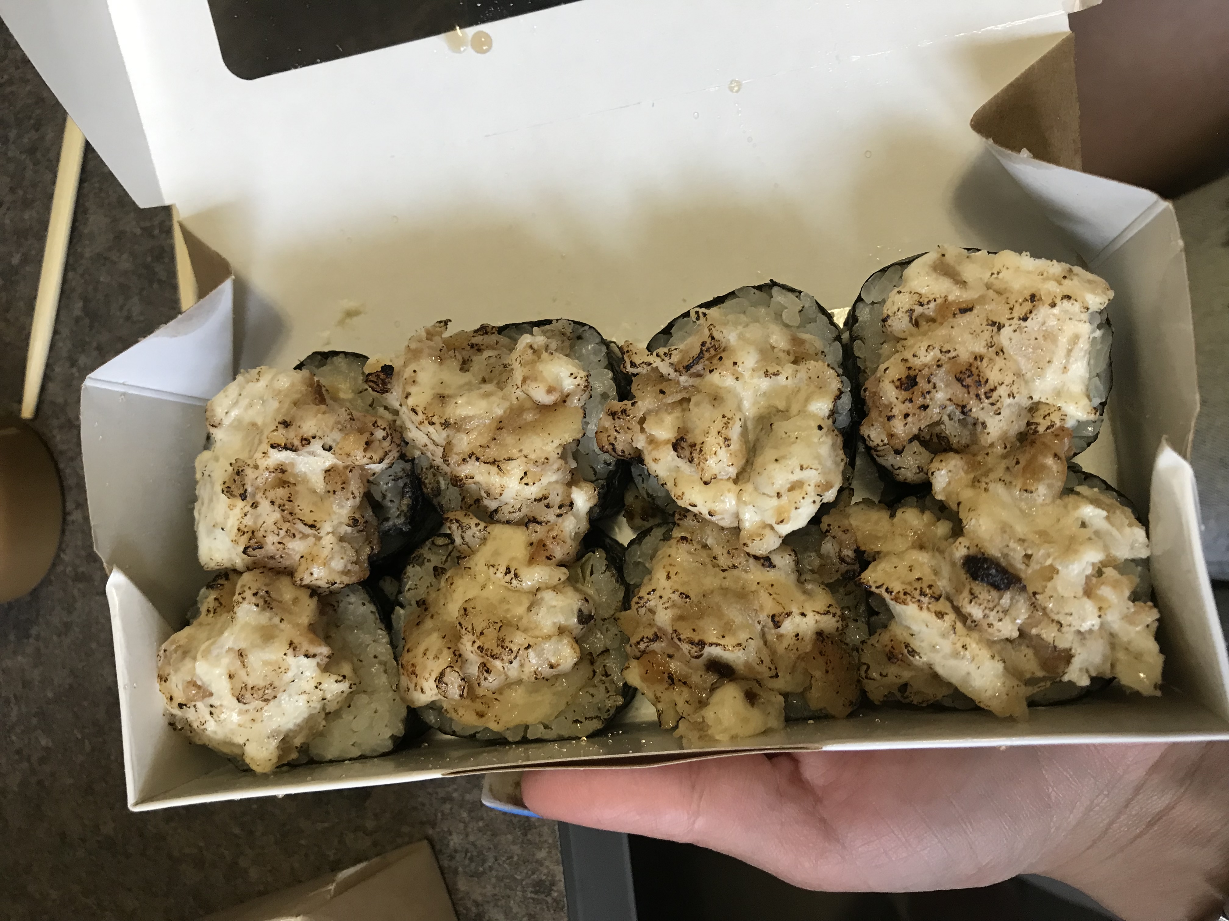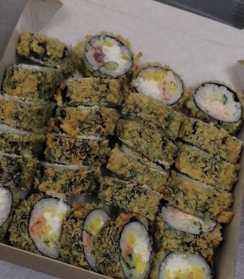 - "Аризона фрай": филе лосося, сливочный сыр, огурец, такуан, панировка - 5 шт.