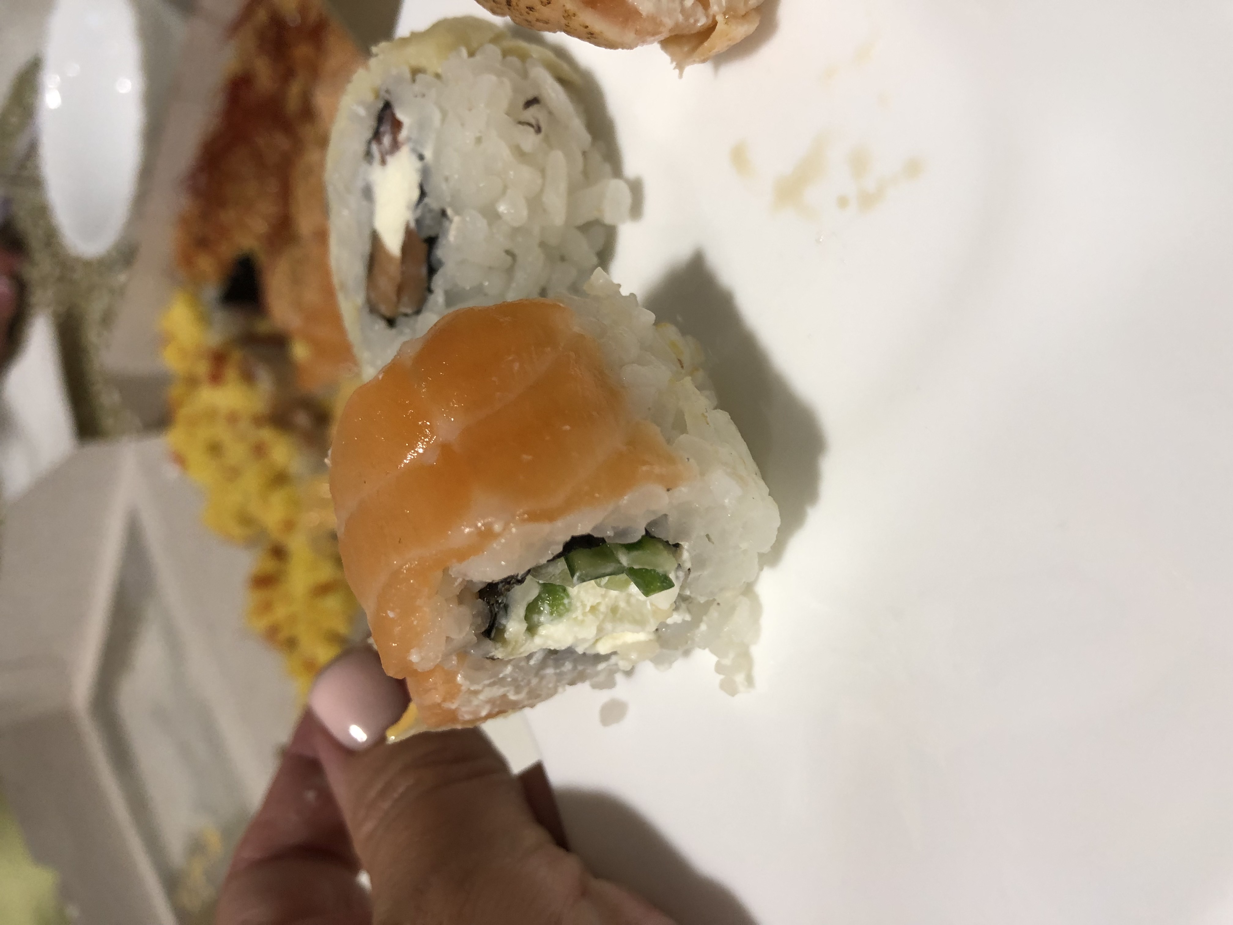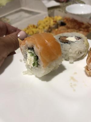 - "Огайо": копченый лосось, острый соус, зеленый лук - 8 шт.