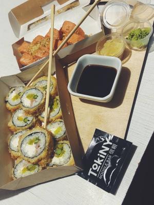 - "Нидзи тунец": филе тунца, сливочный сыр, огурец, такуан, рукола, соус Терияки - 8 шт.