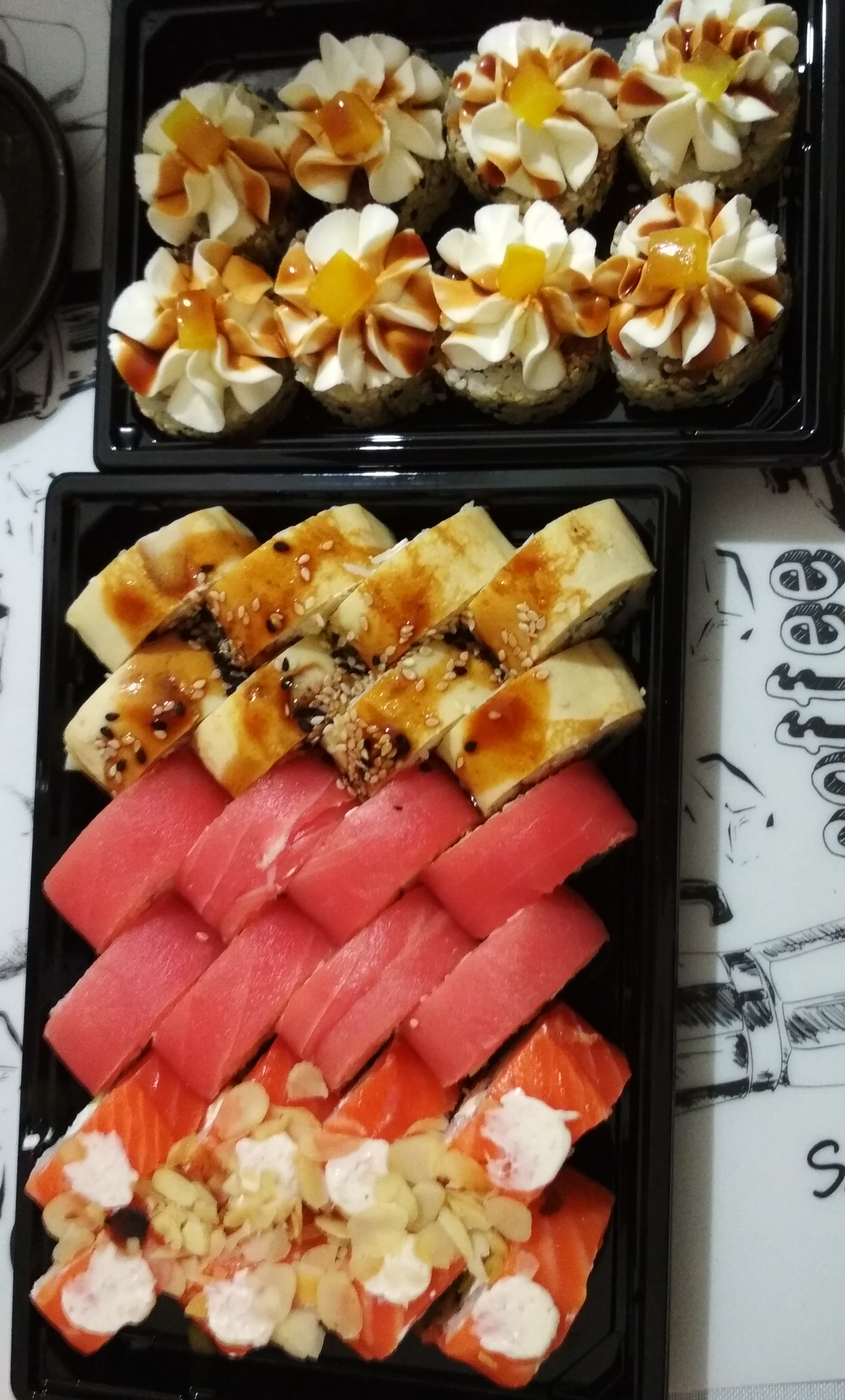 Всё никак не доходят руки отправлять благодарности)Уже не первый раз заказываем у вас.Мой мужчина, который не любит особо суши(лишь Филадельфию) уплетал за обе щеки.Обслуживание,роллы отличные.Спасибо❤