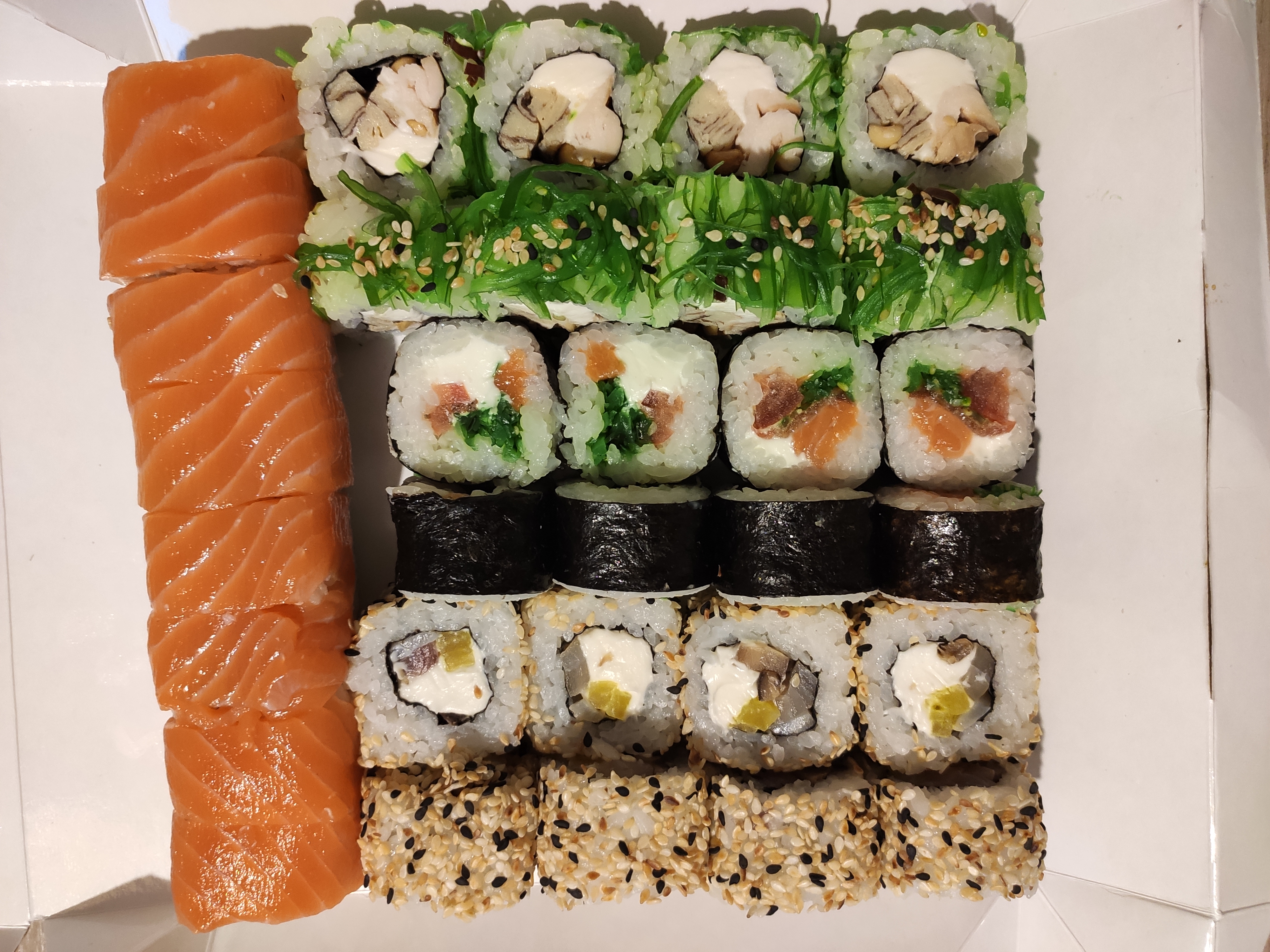 Заказывали в субботу вечером: сет Кайман, привезли вовремя, всё свежее и вкусное.