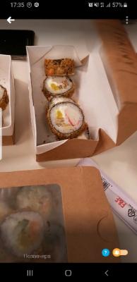 - "Хотсити": жареный морской окунь, сливочный сыр, огурец, омлет тамаго, сырный соус, нори, соус терияки - 8 шт.