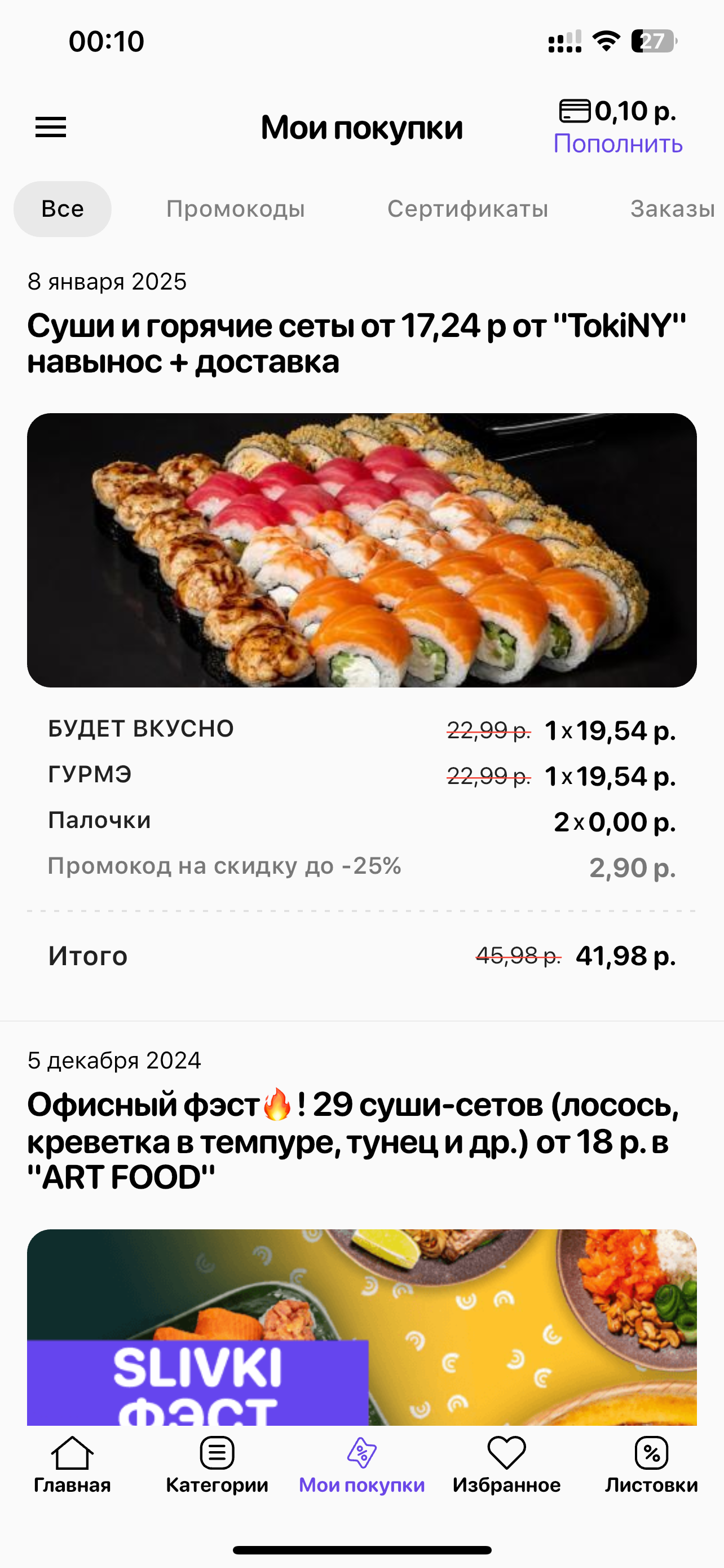 - Промокод дает право на скидку до 30% на доставку и до 40% при заказе на самовывоз (скидка распространяется только на акционные сеты)