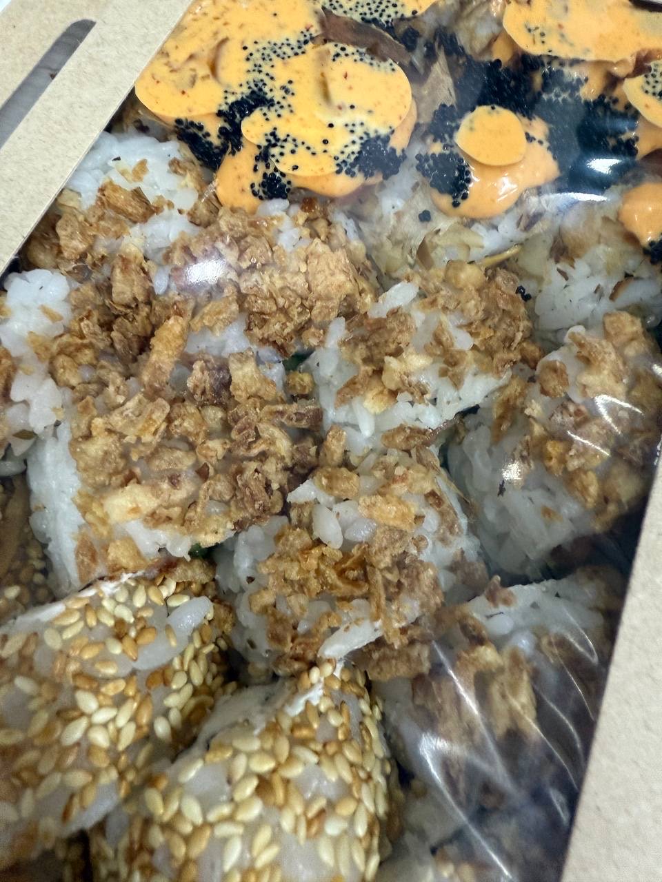 - "Балтимор" (острое): филе тунца, сыр чеддер, пряный соус, криспи - 8 шт.