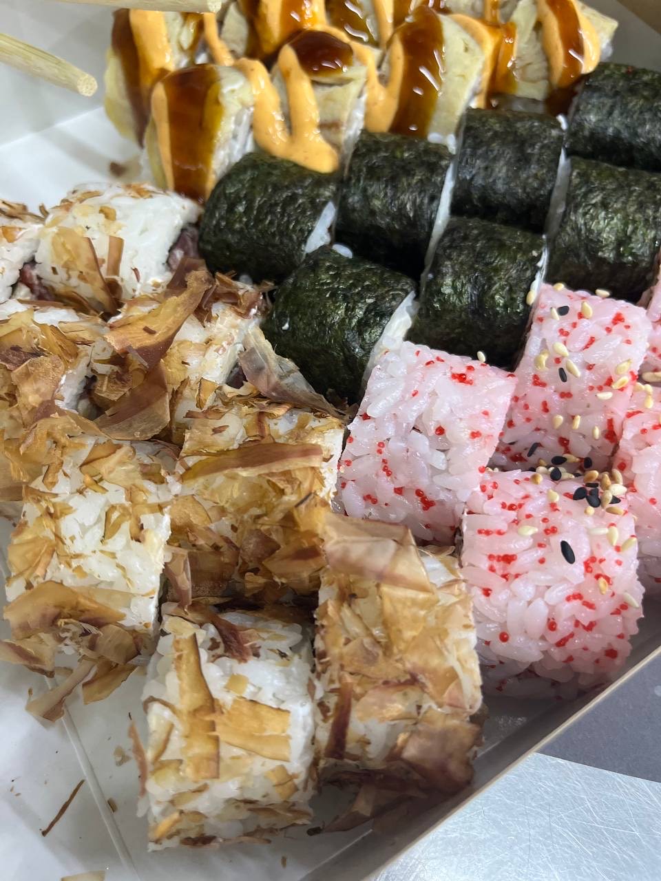 - "Бонито": филе лосося, огурец, сливочный сыр, стружка тунца - 8 шт.