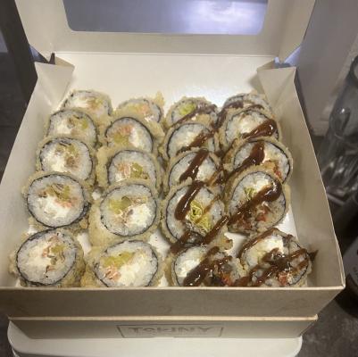 - "Магуро фрай": филе тунца, сливочный сыр, такуан, салат Айсберг, панировка - 5 шт.