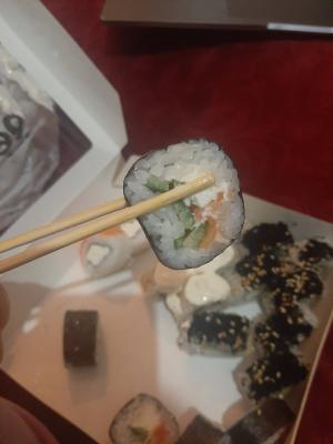 - "Манхеттен": филе лосося, сливочный сыр, авокадо, огурец, кунжут - 8 шт.