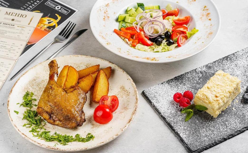 - ужин №2 (салат "Греческий" + утиный окорочок с картофельными дольками + торт "Наполеон") (730 г): 30 р. 60 р.