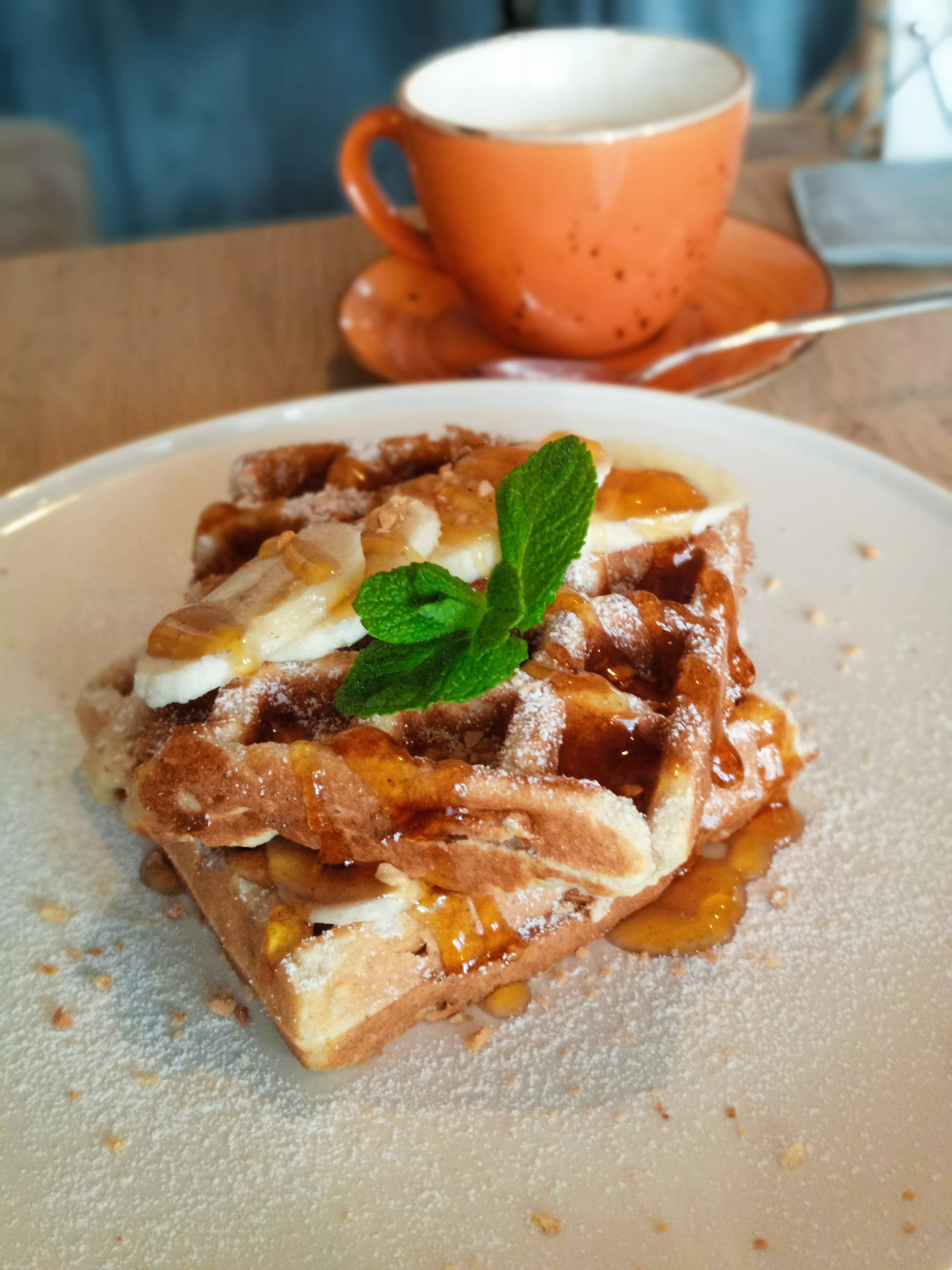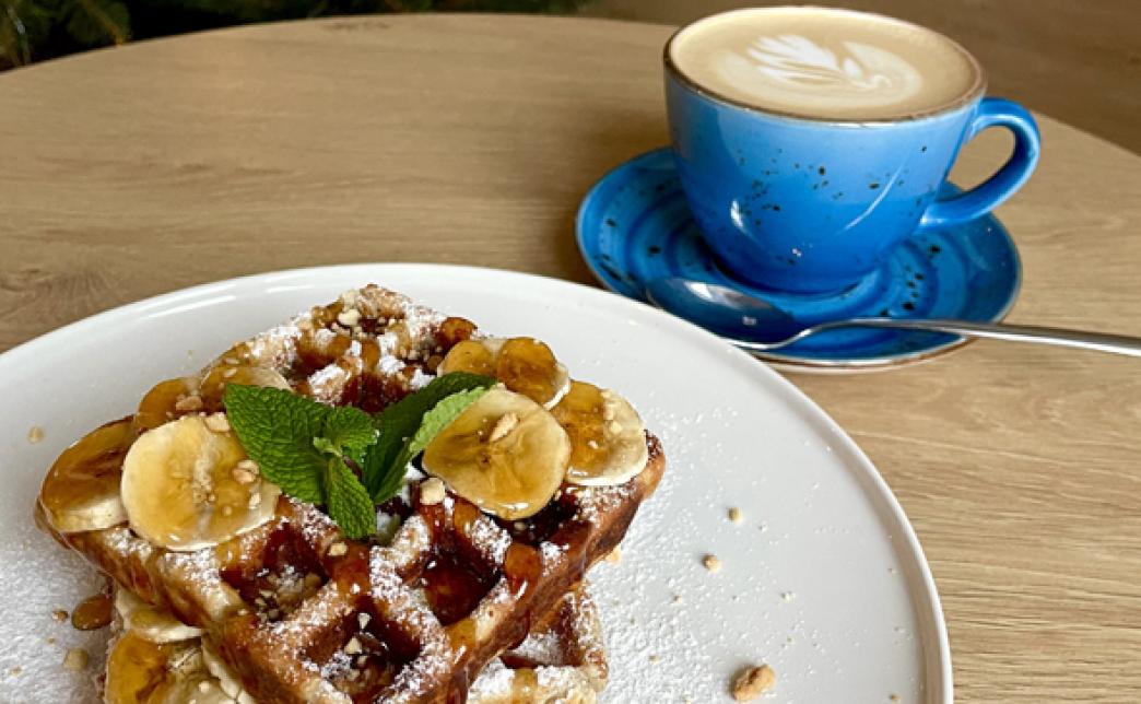 Овсяные вафли с кленовым сиропом и бананом (220 г) + капучино (250 мл)/американо(250 мл)