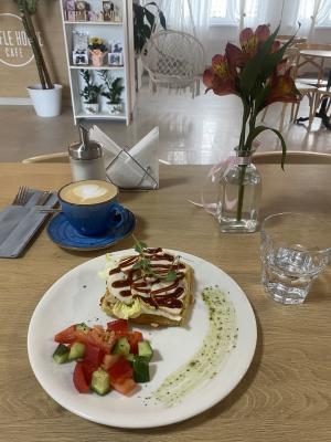 Картофельная вафля с цыпленком (230 г) + какао (250 мл)/капучино (250 мл)
