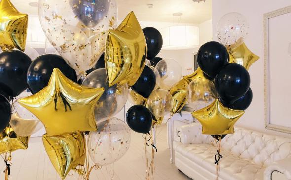 - Для оформления композиций рекомендуем гирлянды из кисточек тассел, гирлянда в виде кружочков, звездочек, фигурок, грузик для шаров в полисилке, индивидуальные надписи на шаре