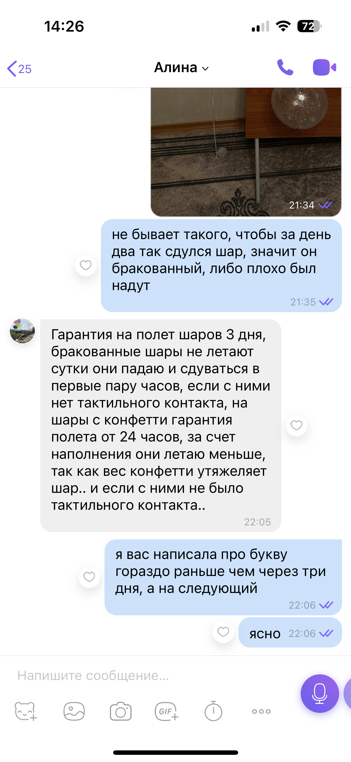 Шары в накаченном виде - нежный и не прочный товар. Просим Вас соблюдать наши рекомендации по сохранности композиций.