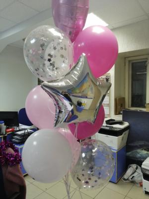 ![]() 1 шар с надписью и наполнением, 2 "18 звезды, 2 шара с конфетти, 3 шара с обработкой Стоимость указана без нанесения индивидуальной надписи |