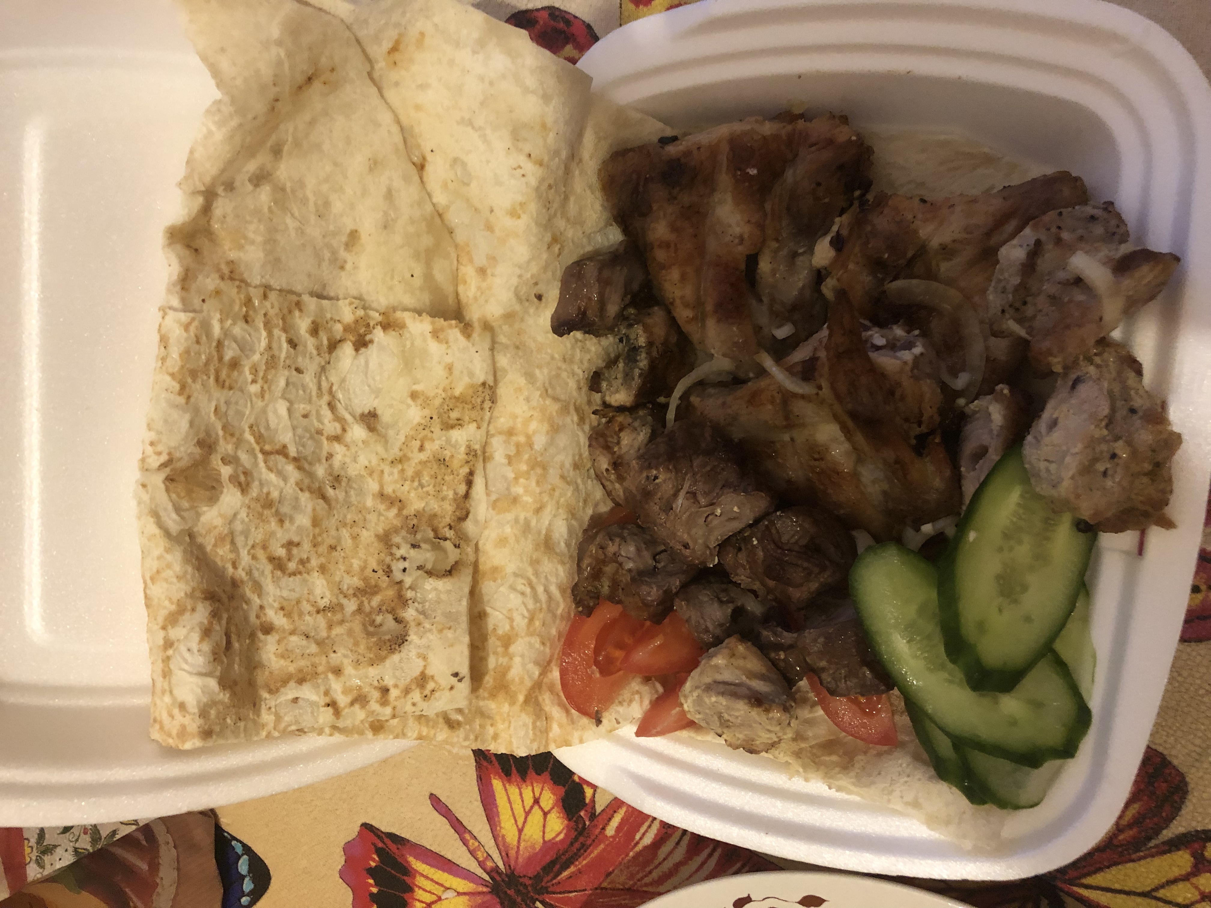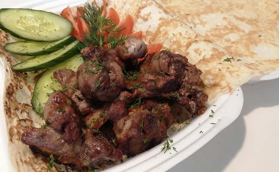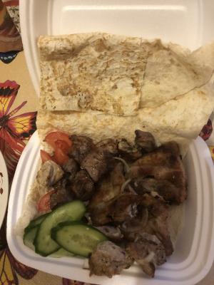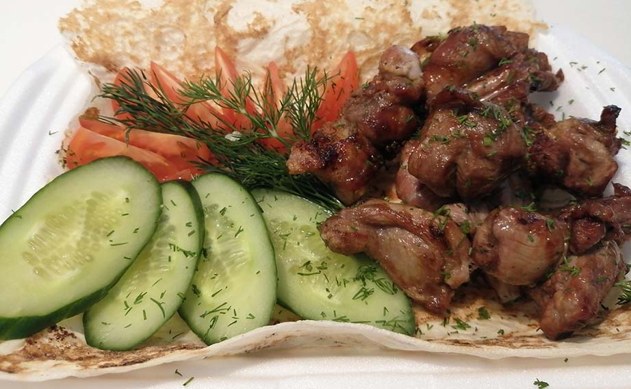 - шашлык из баранины с овощами на лаваше - 360 г (200/60/100):