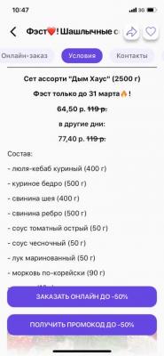 - Промокод дает право на скидку 63% на шашлычные сеты в "Дым Хаус"