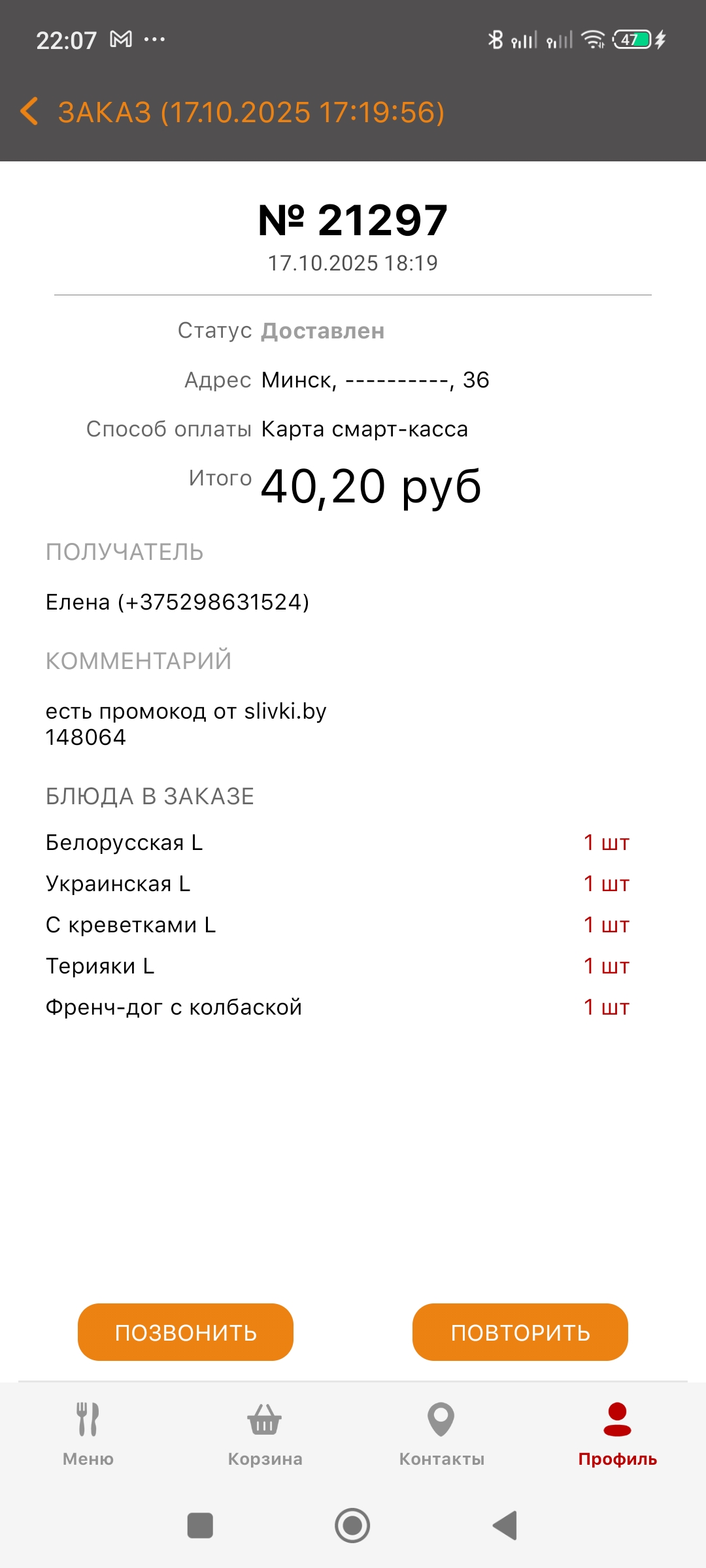 - Оформить заказ можно только через приложение