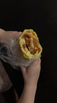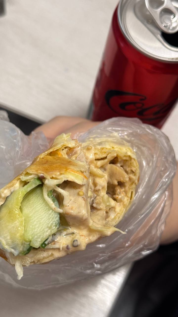 Состав: курочка гриль, сирийская лепешка, соус спайси