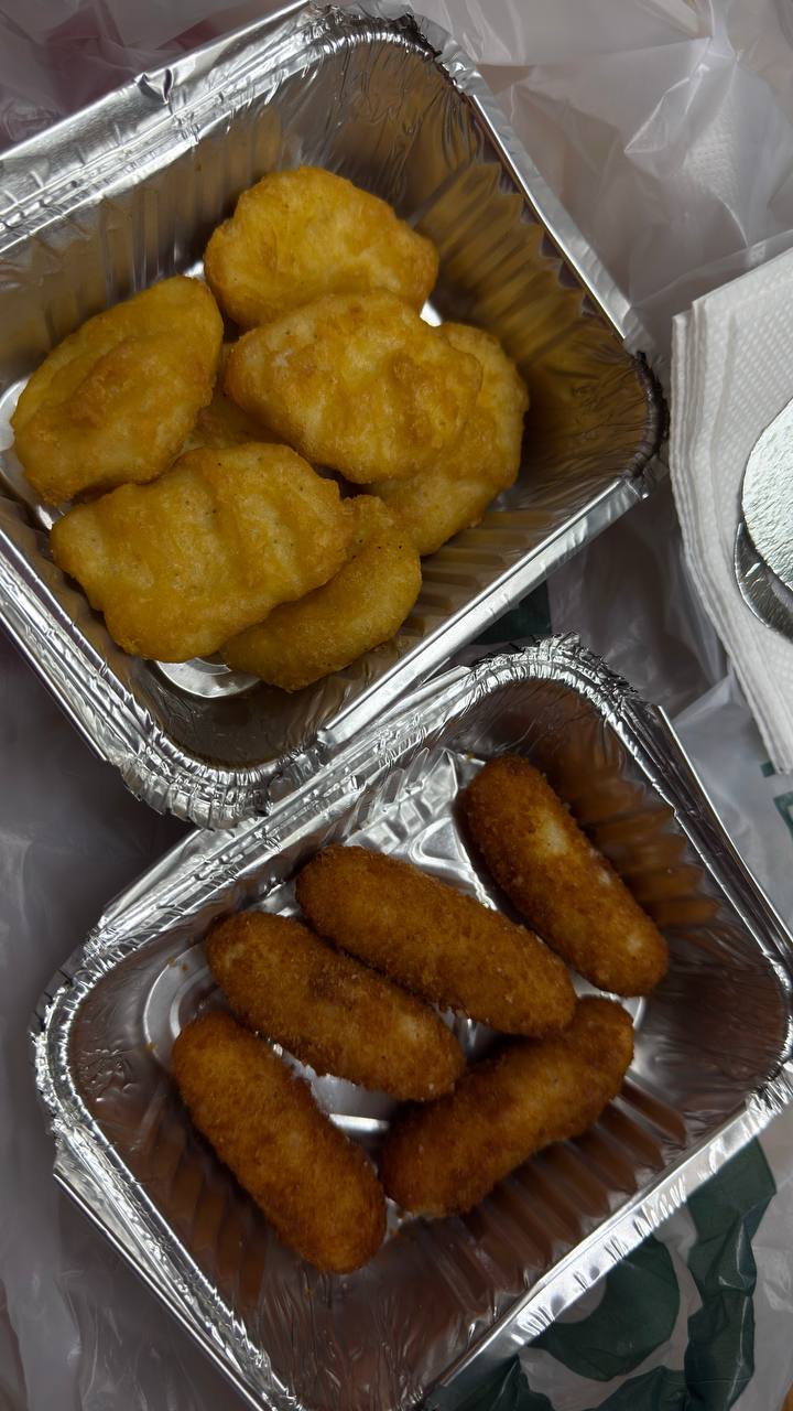 Состав: сырные палочки, наггетсы, сырные медальоны, картофель фри, 2 соуса на выбор