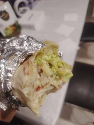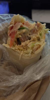 Состав: курочка гриль, сирийская лепешка, соус айсберг