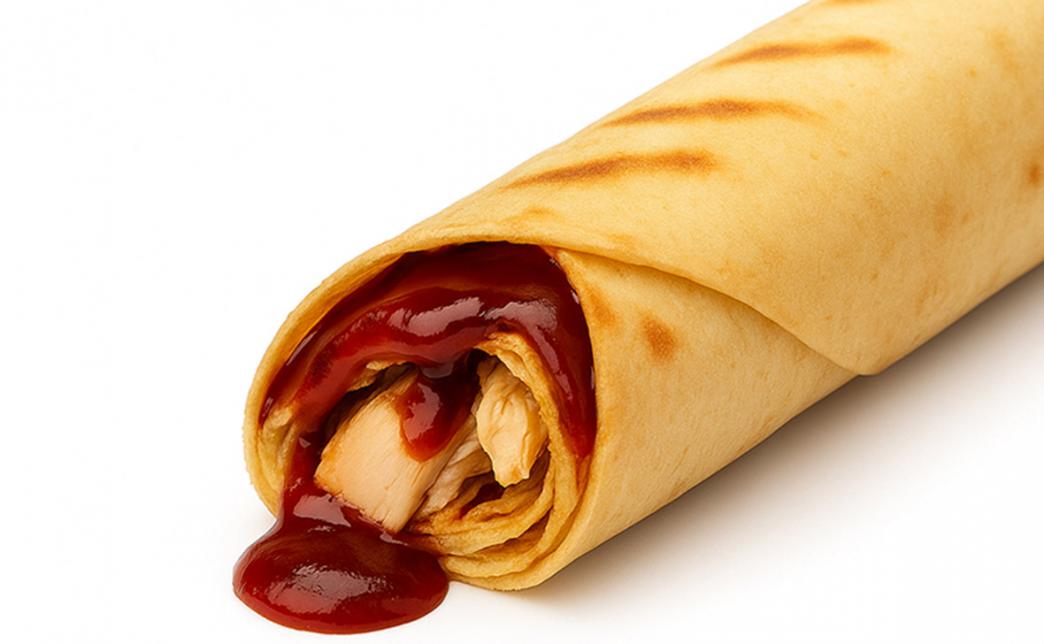 Состав: курочка гриль, сирийская лепешка, соус барбекю