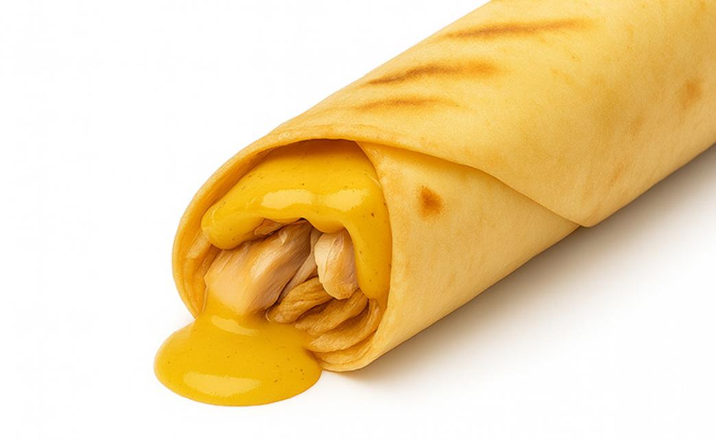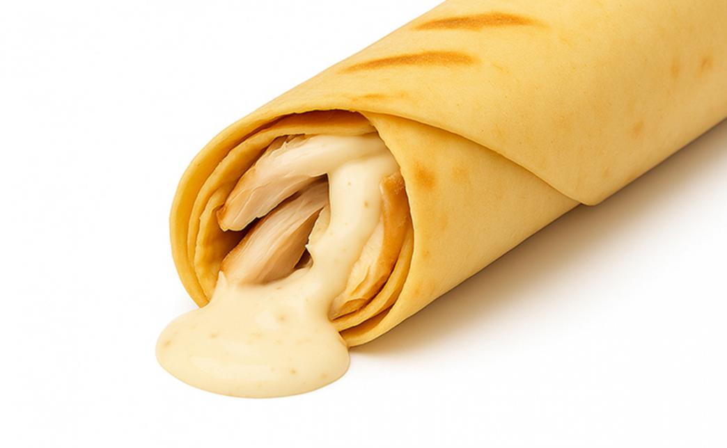 Состав: курочка гриль, сирийская лепешка, сырный соус
