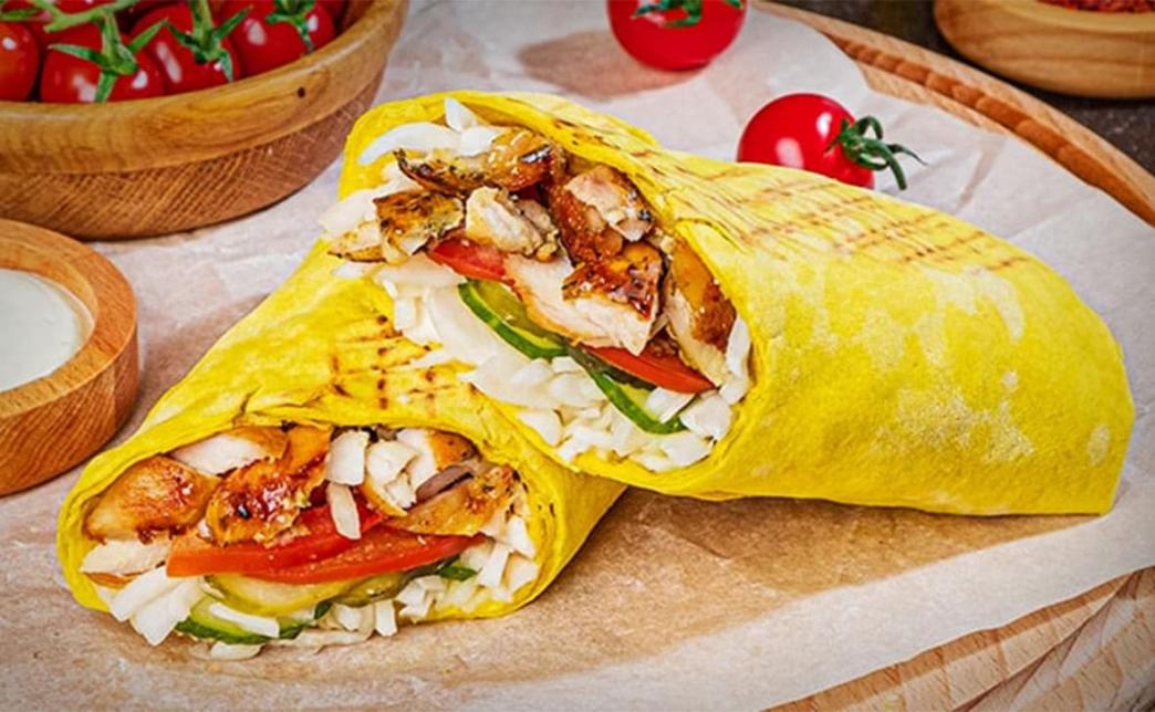 Состав: курочка гриль, сирийская лепешка, соус на йогурте