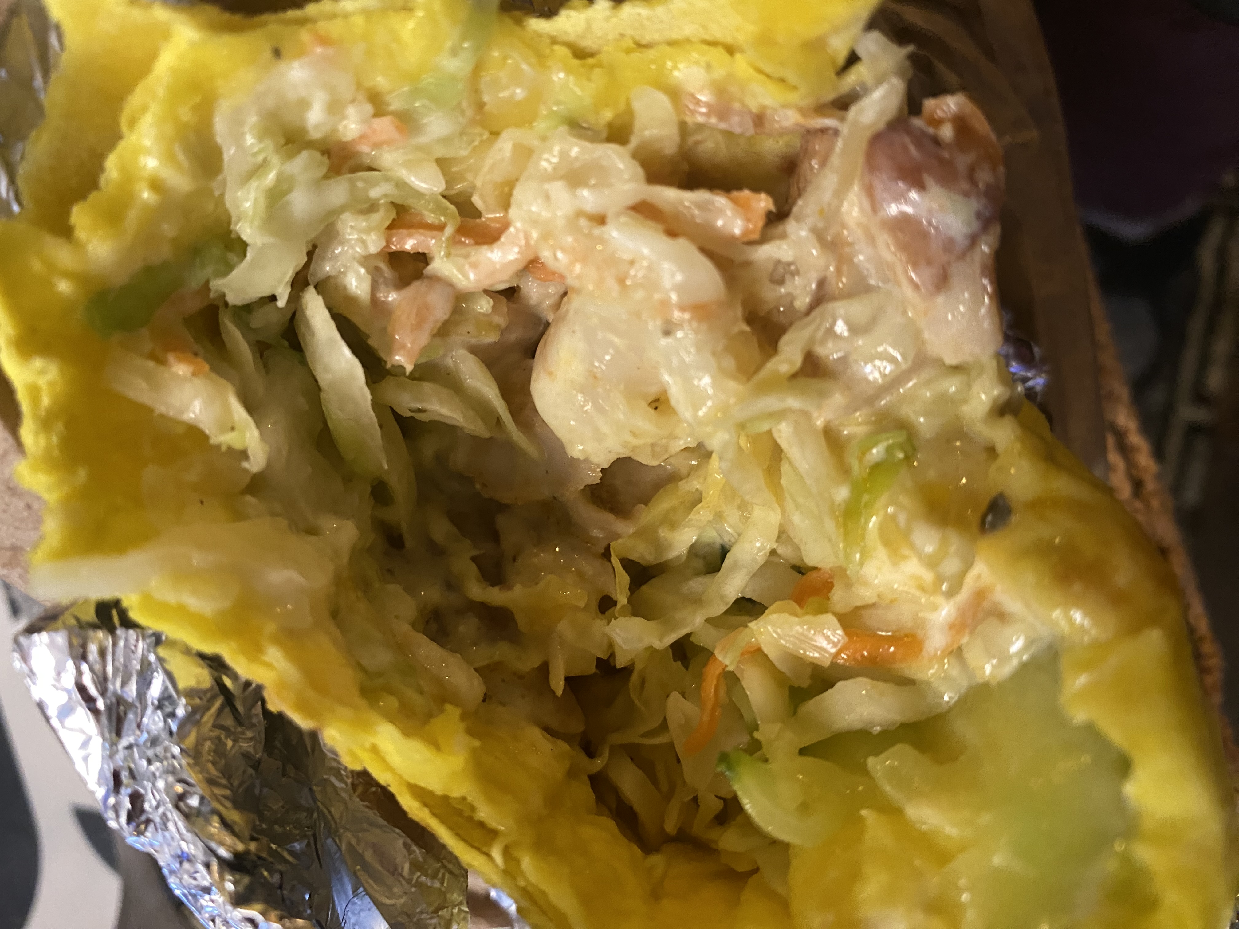 Состав: курица гриль, свежая капуста, пикантная морковь, маринованные огурцы, сочный помидор, соус спайси, сирийская лепешка