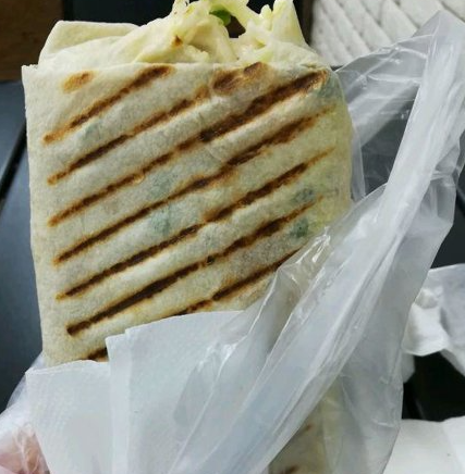 Состав: курочка гриль, сирийская лепешка, соус спайси