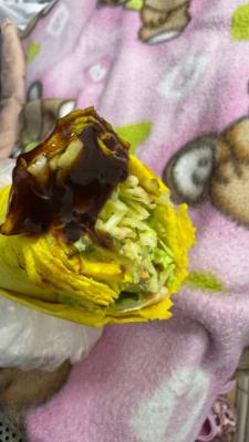 Состав: курочка гриль, сирийская лепешка, трюфельный васабико соус