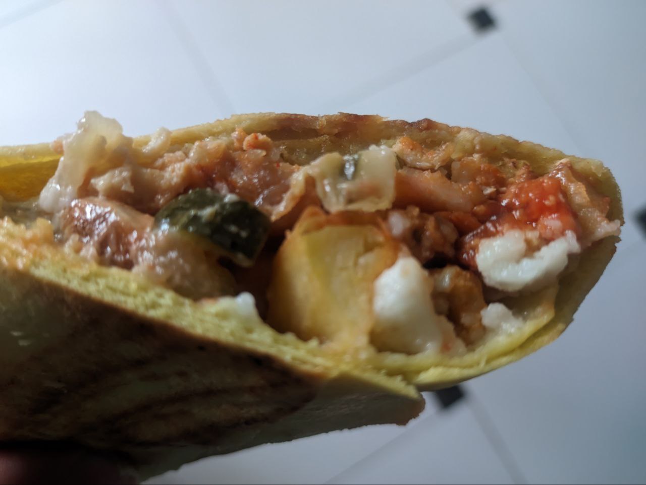 Очень вкусный лаваш, как лепешка. Всегда у всех сухие острые сухари. За это 5+. Но заказывали Супер мясная, в ней должна быть двойная порция мяса.Там как будто одна картошка, без мяса не говоря о двойной порции.Картошка кстати вкусная,но хотелось бы все таки мяса. И вторая Бекон.Бекона нет вообще,может забыли положить