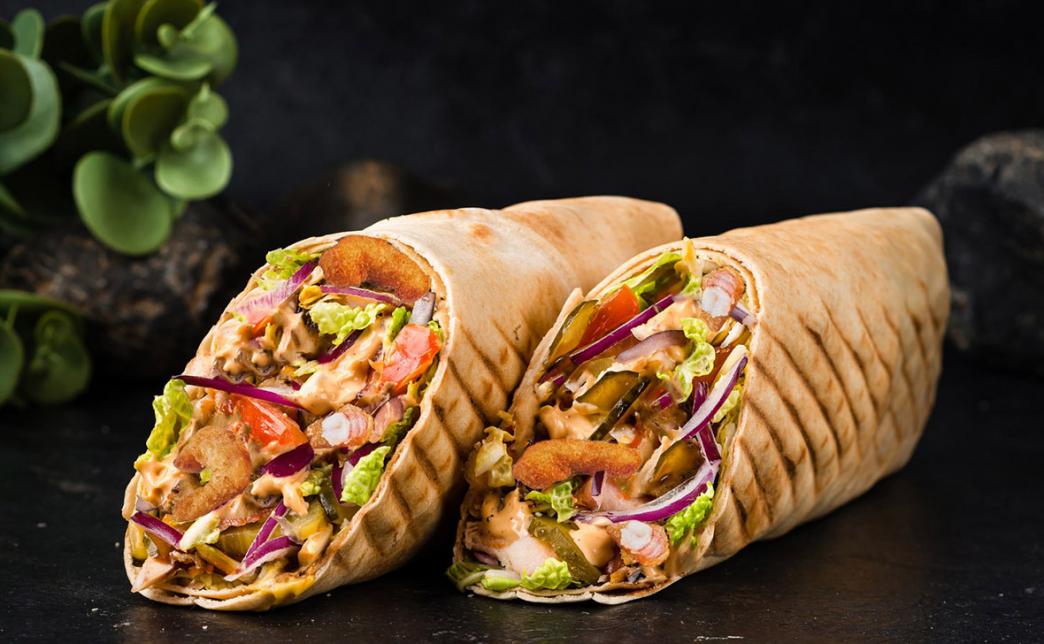 Состав: лаваш, креветки в панировке, огурец маринованный, помидор, капуста пекинская, лук красный, перец сладкий, соус розовый, соус фирменный