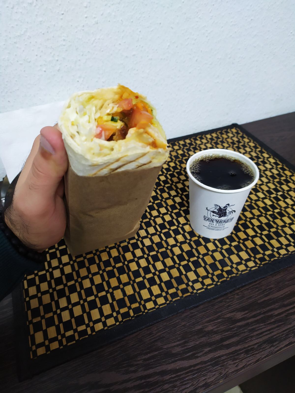 - шаурма "Японская" + кофе/чай: 5 руб. 10 руб.