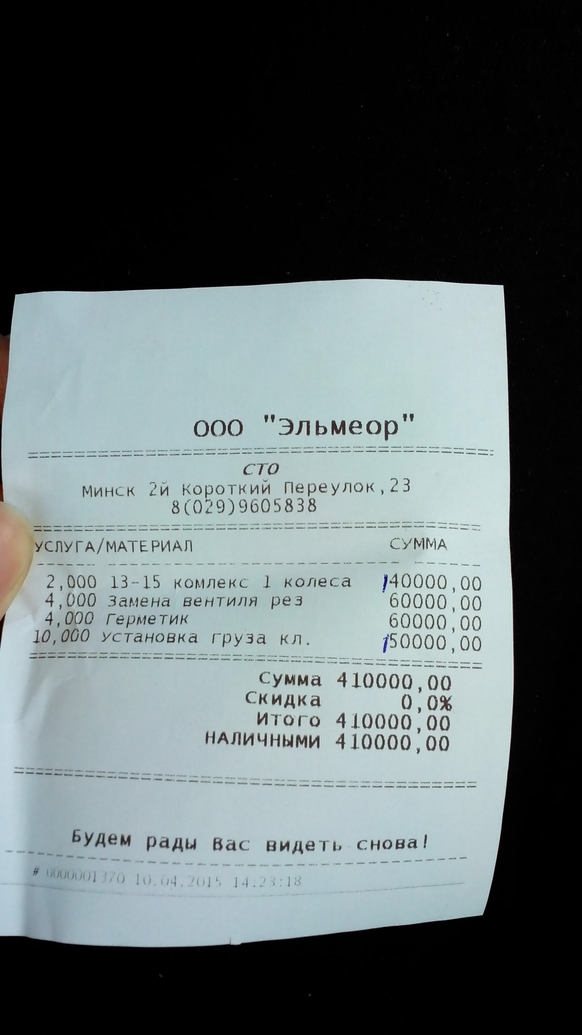- В стоимость комплекса входит: снятие/установка, разборка/сборка колес, балансировка колес, балансировочные грузы клеющиеся и набивные, чистка и герметизация диска (при необходимости), замена вентиля (при необходимости), пакеты для упаковки колес