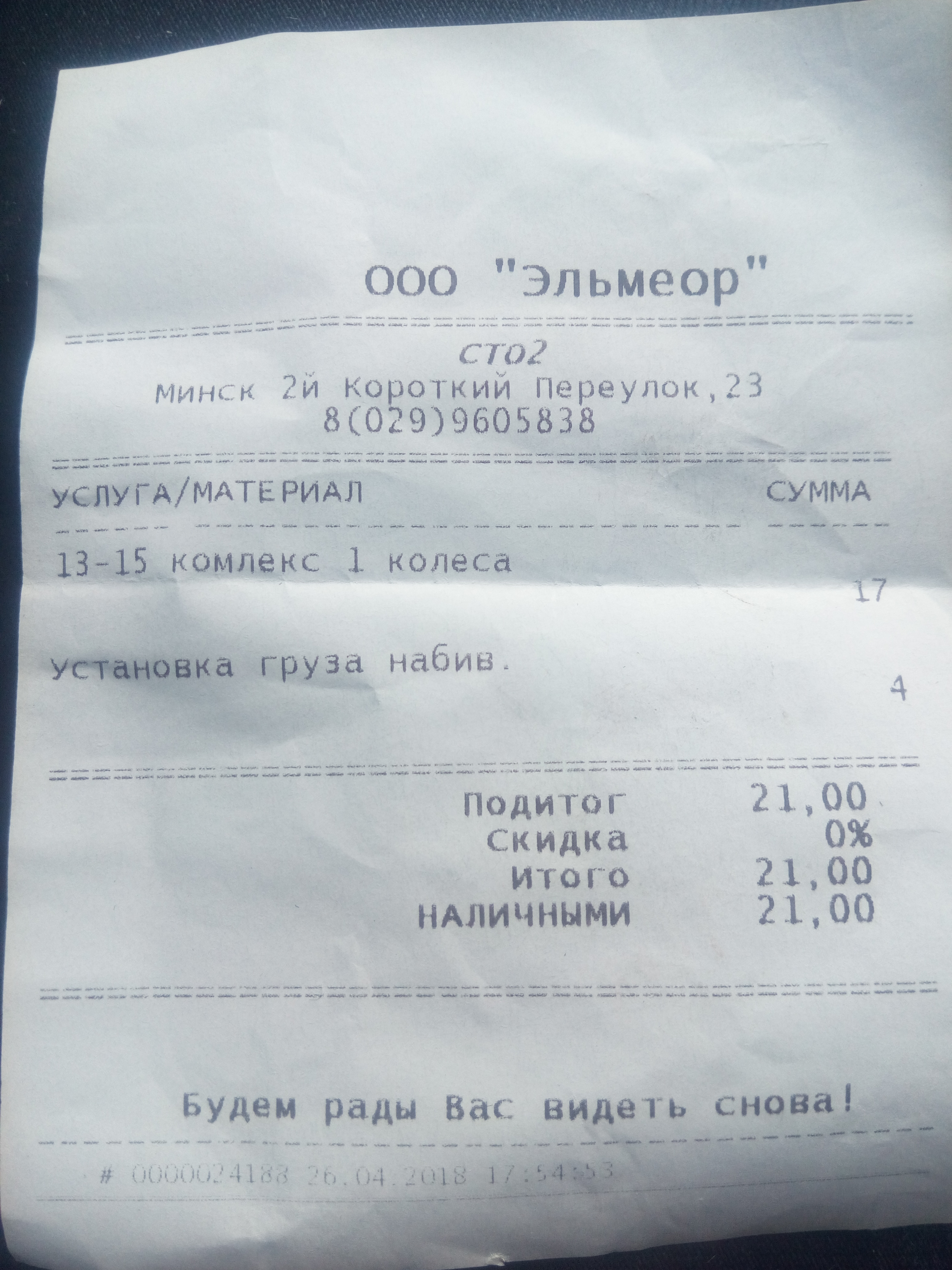 - Стоимость услуги (комплекс из 4-х колес):