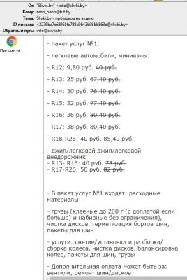 - Дополнительная оплата может быть за: вентили, ремонт шин/дисков