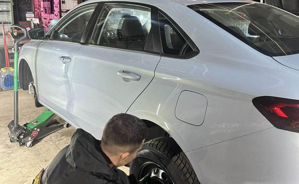 - установка второго комплекта 4-колеса на а/м (шина уже одета на диск)