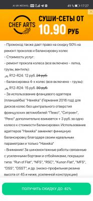 - Промокод также дает право на скидку до 56% на ремонт проколов и балансировку колес
