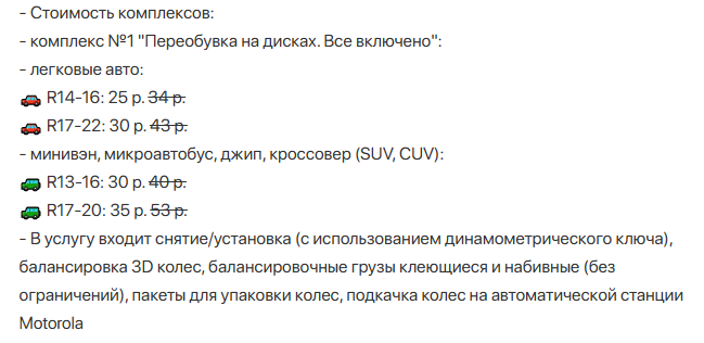 - *Переобувка 2 колес (цена в 2 раза меньше чем 4-х)