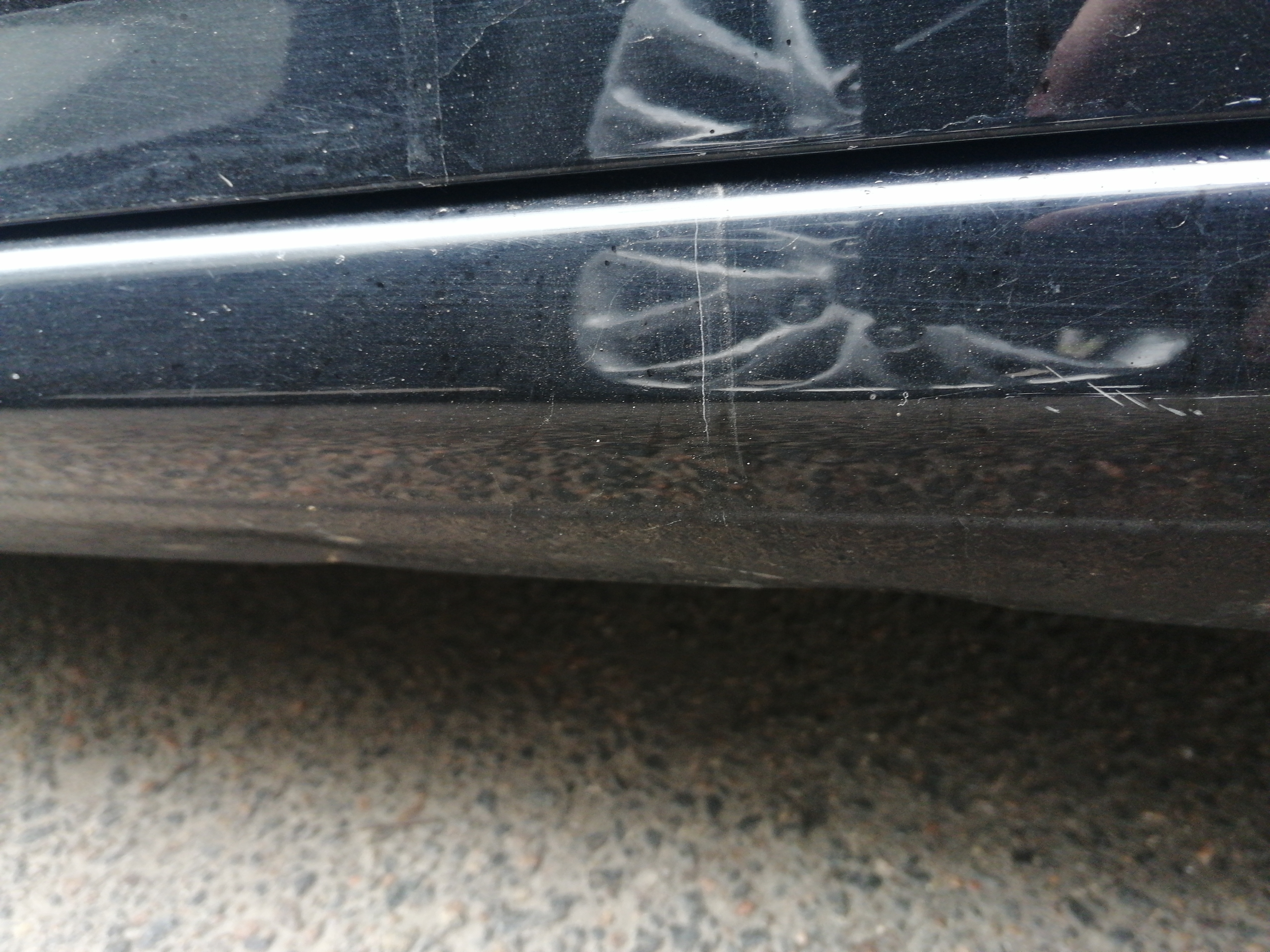 Ребята, извините. Разобрались в ситуации. Не так давно до вашего визита, жена криво съезжала с бордюра, и не сообщив конечно. Поэтому и заметил уже после переобувки. А по фото, впринципе впятины после колёс идут сразу, ракурс фото не такой. Ещё раз извините за такое недоразумение!