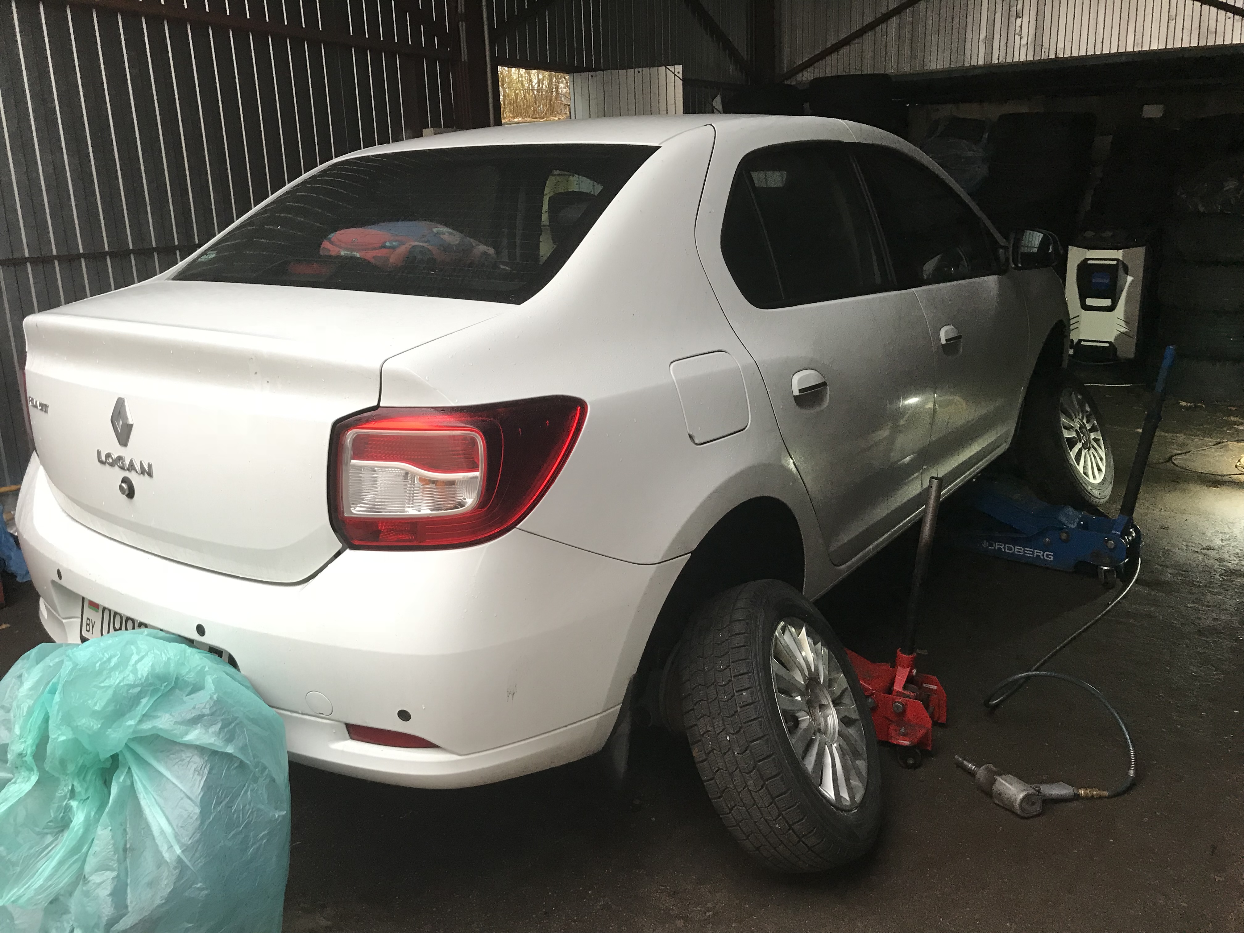 - машины поднимают одним домкратом, т.е. сразу весь бок, что на мой взгляд не безопасно. Домкрат может вылететь, особенно когда мастер бьет ногой по колесу чтобы снять его.