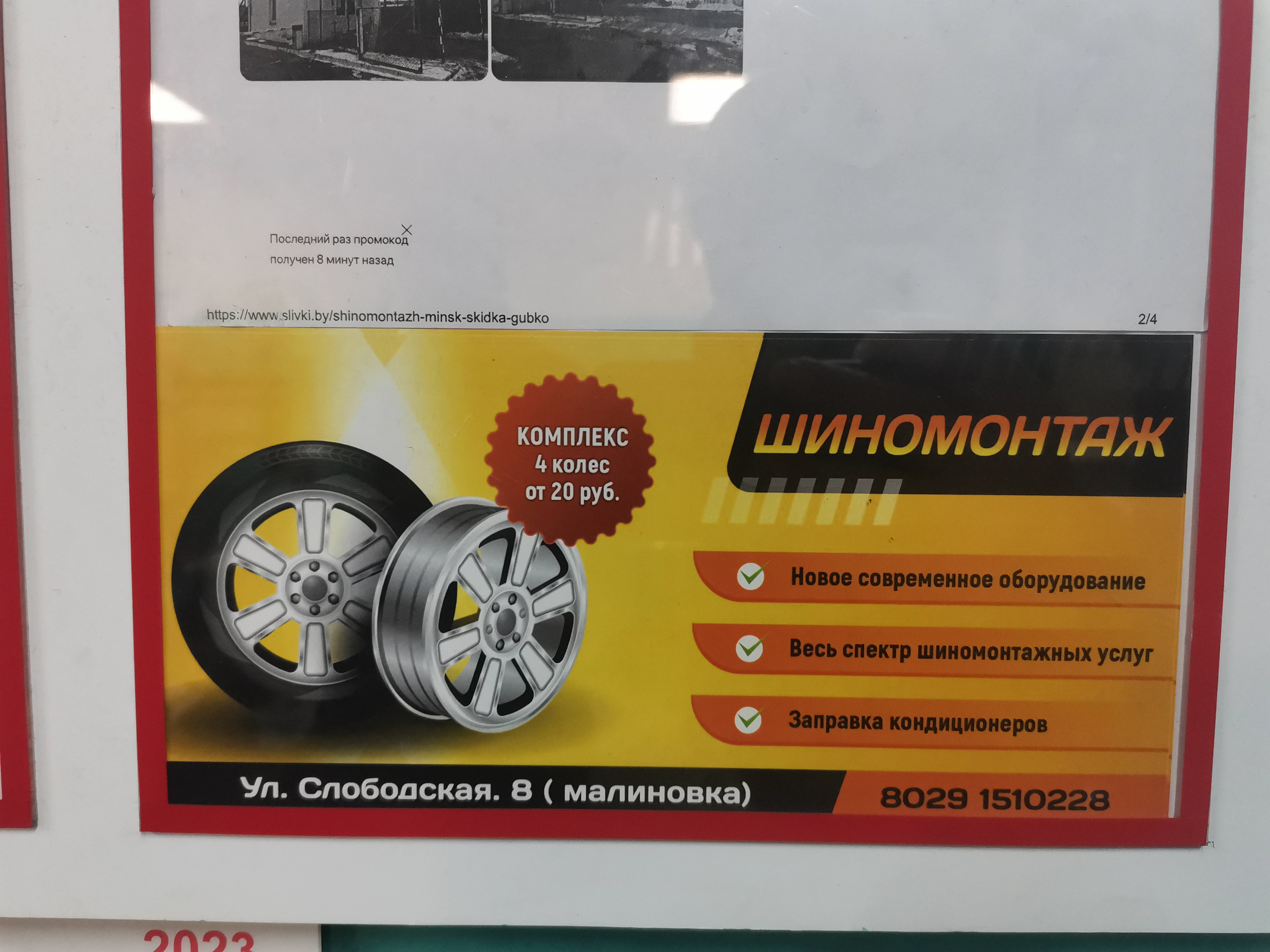 - Промокод дает право на скидку до 50% на комплекс услуг №1 на шиномонтаж по системе "всё включено+" или на комплекс услугу №2 на замену шин на дисках для 4-х колес на Горецкого. "Всё включено: никаких скрытых и дополнительных платежей!"
