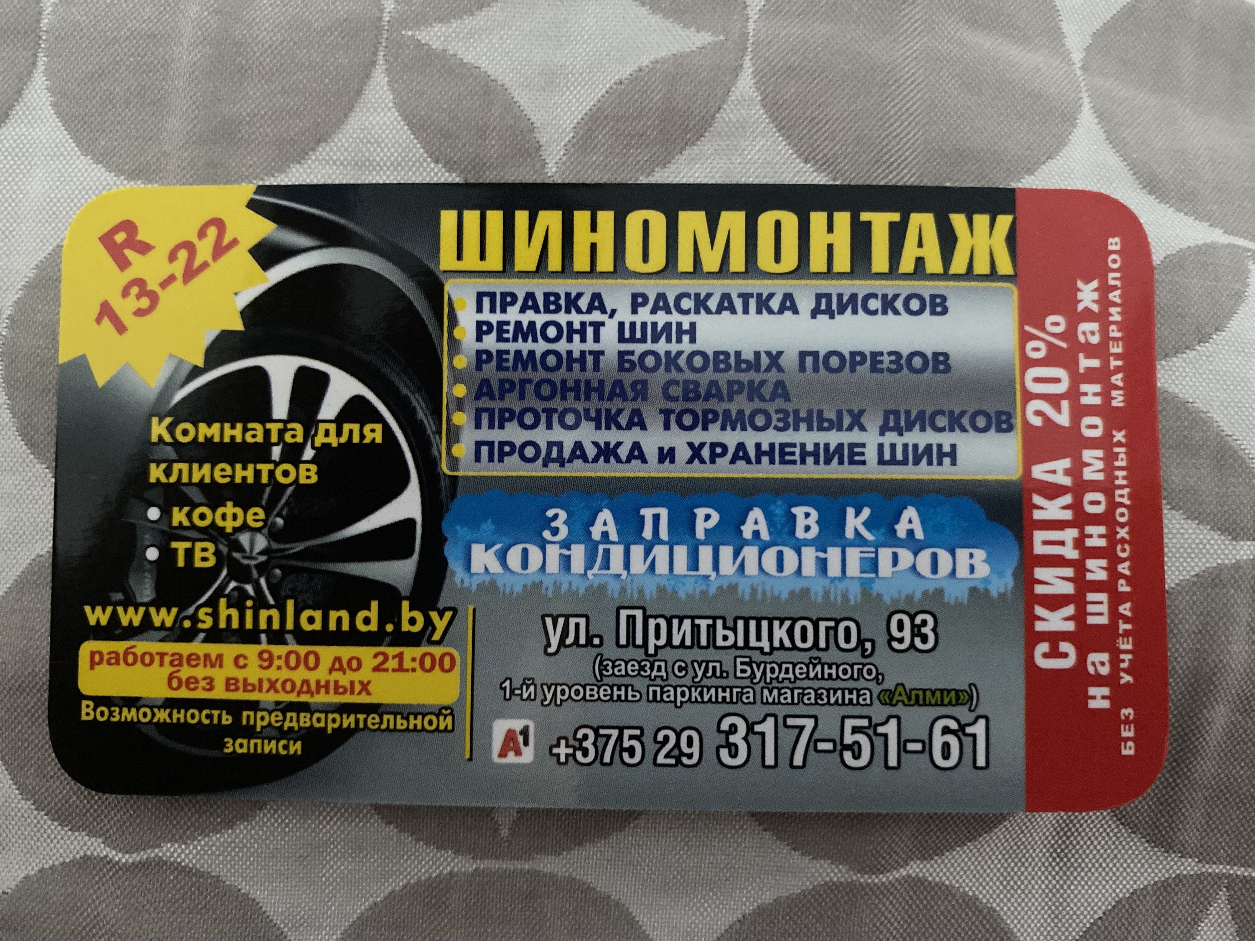 - Промокод дает право на скидку до 50% на шиномонтаж комплекса из 4-х колес по системе "Все включено: никаких скрытых и дополнительных платежей!" (только по адресу ул. Притыцкого, д. 93)