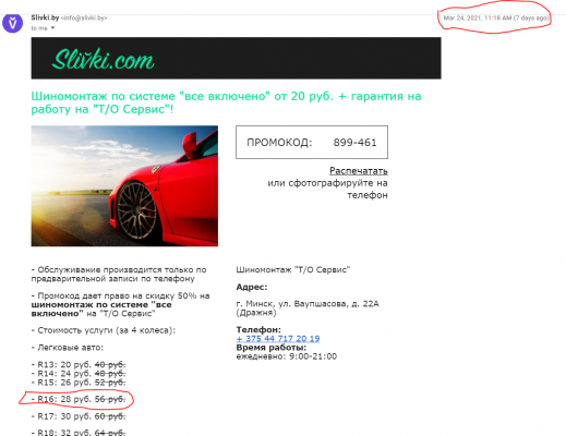 - Промокод дает право на скидку до 69% на шиномонтаж по системе "все включено" на "Т/О Сервис"