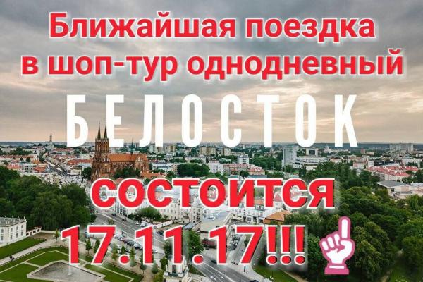 Уважаемые туристы! Ближайшая дата гарантированного шоп-тура в Белосток 17.11.2017г.